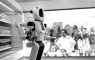 在成都某店内,商品服务机器人在运送饮料。中新社记者 安源 摄